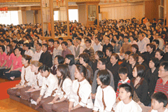 【記者李祖翔台北報導】佛光山北區二○○九甘露灌頂皈依三寶典禮昨天在台北道場舉行,由佛光山開山星雲大師、佛光山住持心培和尚和寶塔寺住持慧得法師主持,逾三千兩百位皈依信眾,烈日下「攜家帶眷」排隊上道場,人龍蔓延至松山火車站,不少人徒步爬上十四層樓,看到殊勝的場面,有人感動得掉下興奮的眼淚。