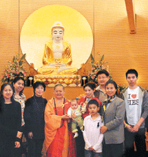 佛光山日內瓦會議中心,九日為功德主楊力軍和朱紅的新生兒楊睿軒舉行祈福禮。