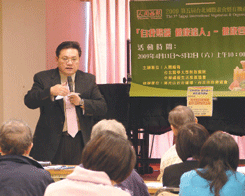 【記者李祖翔台北報導】人間福報將於五月七日舉辦的二○○九第五屆台北國際素食暨有機產品博覽會,開展前邀請醫師、學者舉辦「自我照護‧健康達人」健康管理系列講座,為素博會暖場。昨天台北醫學大學附設醫院乳房健康管理中心醫務主任黃柏榮應邀主講「乳癌篩檢」,他表示,吃素能降低罹癌機率。