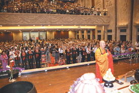 佛光山星雲大師在落成典禮中,帶領逾七千位信眾祈願祝禱。