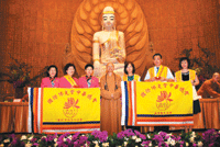 會中,心定和尚為新成立的中山第六分會、高雄教育分會授證,並表揚「二○○九年佛誕節國際設計創意大賽」古智升等十八位得獎者。