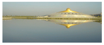 圖說:外觀宛如飛碟般的摩登建築,就是泰國法身寺的新建佛堂。