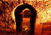 循著導遊人員指示我們一路參觀這個地下古蹟博物館,裡面最特殊的是有一個水源之眼,不斷地由地底冒出泉水,水清涼無比,某些地方仍可看到古羅馬時代的石頭靠墊,在古蹟的末端還有抽水機將水抽出,怪不得只能開放三天,沒有這些抽水作業人根本無法進入,我更加了解為何只開放三天。