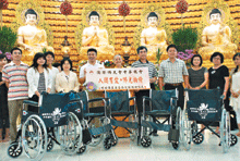 上個月中華總會與佛光山慈悲基金會在佛光山南屏別院合辦第二波「人間有愛‧佛光輪椅」捐贈活動,捐贈八百四十輛輪椅,捐贈對象包括醫院、社會福利團體、學校與政府,嘉惠偏遠山區、弱勢群族與醫療傷患。