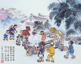 從劉興欽老師這首打油詩裡,我們讀到了爆米香現場的歡喜氣氛、熱鬧場景和孩童的期待心理。
