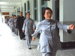 後來,我才發現,無論是飯後跑香或排班行進,只要是走路,一定是走「直」角,而且是「直」的走,走路時,不可左顧右盼,不可低頭或仰視,必須看著前方,注視前面那個人的衣領或後腦勺,若能看見其它人,就代表自己走斜了,沒有對齊。