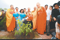 ;在開幕儀式後,首相即前往藍毗尼園參觀並親手種下一棵菩提樹。