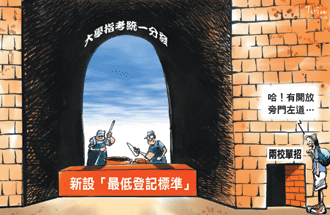 倒是要注意的是,由於少子化,學生愈來愈少,入學門檻的把關應該多注意,以免降低大學生素質。今年除了第一個門檻「最低登記標準」外,另有五十七系組自訂第二關的「最低入學標準」,這值得鼓勵。