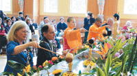 下午,眾人齊聚小禮堂,一邊享用可口素食,一邊欣賞伊斯蘭教小朋友的非洲鼓、佛光中文學校小朋友文殊心咒的手語表演、著名歌唱家朱欽路獻唱、佛光人的元極舞、和道地的地方戲曲表演,整個禮堂充滿了掌聲和讚歎聲,熱鬧非凡。