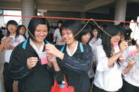 南屏別院已連續多年邀請高雄市政府教育局、國際佛光會合辦,為考生加油的活動,在四、五月走入校園,幫助青少年獲得身心靈的安住。許多參加過活動的學生表示,經過簡單溫馨而莊嚴的祈願祝福,讓他們的內心湧現著全力衝刺的信心和決心。 (圖/南屏別院提供)