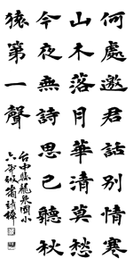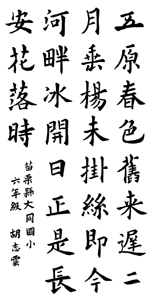 《小書法家》 蕭靖樺 胡志雲 |2009.05.27 語音朗讀 545觀看次 字級 大 中 小 蕭靖樺(台中縣龍泉國小六年丁班)胡志雲(苗栗縣大同國小六年己班) 前一篇文章 《小小詩人》牆 下一篇文章 《辛苦的阿嬤》生命的天使 熱門新聞 01WTA、ATP年終賽 獎金創新高2025.11.0702再闖WTA年終賽 謝淑薇力拚第2冠2025.11.0703健保補充保費變革 政院急踩煞車2025.11.0704佛光山大學校長論壇 盼教育融入佛法2025.11.0805【詩】再現綠川2025.11.0706補充纖維、鈣、鎂、鉀 預防多種疾病風險2025.11.1107小蠻牛對決辛納 爭年終賽球王2025.11.0708星雲大師全集【傳記】百年佛緣─生活篇 我的衣食住行 5-52025.11.0709美國好手輩出 10人晉級年終賽2025.11.0710【養生百味】冬食淡素 防範疾病2025.11.08 訂閱電子報 台北市 天氣預報 台灣一週天氣預報 相關報導 【快樂塗鴉簿】 自我介紹【趣味動物園】 森林巨人──棕熊的祕密生活【快樂塗鴉簿】夢幻鳥【創意黏土教室】好柿一籮筐 輕黏土創作【快樂塗鴉簿】蝴蝶的蛻變【快樂塗鴉簿】白鵝一家人