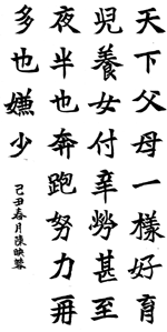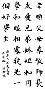 《小書法家》 陳映蓉 陳柏儒 賴家正 |2009.06.03 語音朗讀 424觀看次 字級 大 中 小 陳映蓉(台中縣龍泉國小六年丙班)陳柏儒(屏東縣四維國小六年乙班)賴家正(高雄縣五林國小六年孝班) 前一篇文章 《心靈小郵差》 下一篇文章 《徵文啟事》 熱門新聞 01【寬鼎畫語】 看不見的真相2025.11.1002巴黎佛光人 重陽敬老長幼同樂2025.11.1003鳳凰撲台 今明北東雨量恐紫爆 2025.11.1004南天健康日 身心靈課程吸引社區民眾2025.11.1005COP30揭幕 關注氣候人權與森林2025.11.1006人間佛教聯合總會 推人間佛教國際化2025.11.1007巨型蔬果牆 行銷中台灣2025.11.1008【文化遺產】 走訪瀋陽故宮2025.11.1009星雲大師全集【經義】佛法滿人間—佛法滿人間 常不輕2025.11.1010霧鎖科威特2025.11.10 訂閱電子報 台北市 天氣預報 台灣一週天氣預報 相關報導 【快樂塗鴉簿】 自我介紹【趣味動物園】 森林巨人──棕熊的祕密生活【快樂塗鴉簿】夢幻鳥【創意黏土教室】好柿一籮筐 輕黏土創作【快樂塗鴉簿】蝴蝶的蛻變【快樂塗鴉簿】白鵝一家人