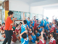 精采的劇情,吸引了小朋友的注意力,最後周會長以提問方式,讓現場小朋友搶答;與會師生皆表示,身心障礙的人透過努力,也會有光明快樂的生活,給小朋友不少啟示。