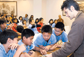 曾是國際傑出青年禪學營學員的專業魔術師Tomas Meier(右),以「幻象與錯覺」為題,配以魔術表演與走過憂鬱症之經驗,說明佛法如何運用於生活。