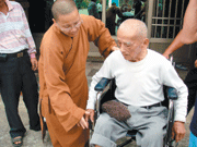 九十四歲的村民陳天德獲得輪椅後,非常歡喜地感激佛光山對他的照顧。村長曾金益也同時代表村民向佛光山致謝。