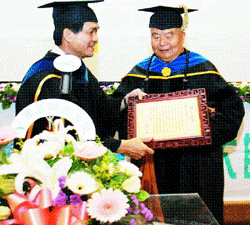 中山大學尊崇大師成就如此重大成就的奮發精神,足為社會學習楷模,經名譽博士學位審查委員會審查通過,依學位授與法之規定授與名譽文學博士學位。