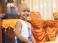 根據印度習俗,年滿三歲小孩必需於佛寺舉行祈福儀式,並由僧人為其剃頭,有庇佑小孩平安長大之意。 (人間社記者慧初攝)