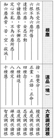 此乃三藏教調伏六根,以具足六度之修持意。如左圖: