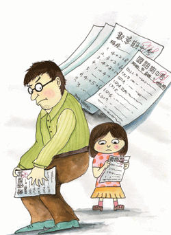 想起月考前,媽媽買了複習卷讓妳習寫,妳小小的手在一張張的考卷上來回穿梭,爸爸覺得妳不夠專心,一邊習寫一邊看電視,媽媽拿著高高的紙箱子擋住妳的視線,妳卻低下頭左顧右盼,一點兒也不在乎。我知道妳不喜歡寫考卷,不過爸爸還是叮嚀妳要努力,因為考試是每個學生必經的過程,只有一分耕耘,才有一分收穫,考試就要努力準備,這是千古不變的道理。