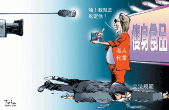 入夏以來,台北市衛生局先後裁罰了數十案的誇大不實瘦身食品廣告,處分案件數量雖遠多於過去,但由於所依據的法令為「食品衛生管理法」,因此裁罰對象仍限於業者,對誤導消費者的代言名人,則無責無罰,令「上當」的消費者忿忿不平。