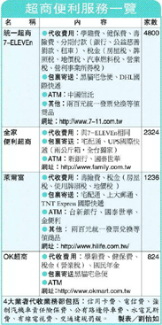 公平會調查資料顯示,全家便利超商有兩千三百二十四家店居次;萊爾富一千兩百三十六家店位居第三;第四位為OK超商,有八百二十四家;第五位是台糖蜜鄰,有二十家。