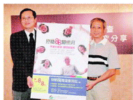 中華民國糖尿病衛教學會理事長許惠恒(左)表示,父親節下午二時至六時,在台北市信義新天地A10停車埸(香堤廣埸),將舉辦譗控糖八八園遊會豃,希望全家牽起手,控糖動一動,現場有免費血糖檢測,控糖親子操,讓大小朋友成為控糖生力軍。記者邱麗玥攝