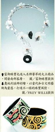慕夏、克林姆、百水等藝術家揚名維也納,其畫作躍於FREY WILE品牌上,在歐美擁有忠誠度極高的粉絲。此品牌的台北第一家店,七月已在101大樓開幕,為台灣藝術珠寶又添一樣風華。