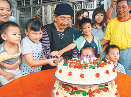 楊智明說,去年席開十五桌,今年「Kai Nu」特別叮囑,不要大肆慶祝,「只要大家聚在一起,簡單切蛋糕」,昨天中午子孫們端出兩層高的大蛋糕,一邊唱生日快樂歌,一邊牽著「Kai Nu」的手切蛋糕,場面溫馨又熱鬧,下午近百人齊聚在家門外廣場烤肉。
