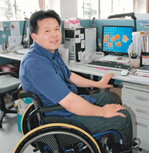 劉政奇是桃園縣私立脊髓損傷潛能發展中心自學員轉為留用的個案管理課員,劉政奇說:「九年前,我的人生被一輛闖紅燈的自小客車摧毀了,下半身終身癱瘓,在醫院治療三個月後返家,只能躺在床上。」
