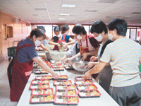 此外,屏東講堂昨天傍晚時分再度發動佛光人,製作炒麵、飯食等數百個便當,分別送往新埤、林邊等災區給災民食用。