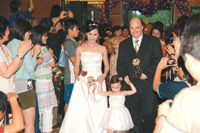 圖:佛光山南台別院二○○九年慶祝父親節暨菩提眷屬祝福禮,參加菩堤眷屬福證的外國朋友,帶著可愛小女兒一起出場。人間社記者張錦松攝