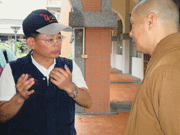 「星雲大師非常關心目前災民的情況,指示佛光山全力配合政府,協助救災工作。」慧傳法師在旗山禪淨中心向縣長楊秋興說明,目前佛光山協助救援運送物資的情況,楊秋興除了感謝大師、佛光山的關心外,看到災民安置的地方相當完備,同時設置了餐飲、安單、接待、醫療組別,非常感謝寺方用心。 (人間社記者羅熙珍攝)