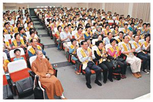 晚上,宗委會主席心培和尚以「人生百事」為題,勉勵參訪者能將佛法運用在生活中,學習謙卑、不比較、不計較,勇於讚美他人,包容異己,並以「做人處世,要懂得一些禪心」一語,鼓勵大眾多一份柔軟心、體貼心,就能給他人方便,給自己方便,人我相處必能和諧、融洽。