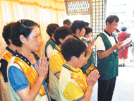 義消殉職 佛光人助念 林思展 |2009.08.16 語音朗讀 525觀看次 字級 大 中 小 馬英九總統昨日到英勇救災的義消張瑞賢家中,慰問家屬,家屬痛哭失聲,馬總統要家屬節哀順變。而佛光會竹山分會會長羅榮進及林正恆督導,十四日獲悉張瑞賢落水送醫,立即帶領會員前往竹山秀傳醫院關懷慰問,並帶領家屬稱念觀世音菩薩聖號,許秀珠師姐則善言安撫家屬情緒(右圖)。隨後佛光會及法鼓山會員在名間鄉中山村的張宅一齊助念(左圖),希望彌陀佛以慈光攝受,接引往生極樂世界,並護佑家屬早日走出悲痛。圖與文/人間社記者林思展 前一篇文章 SOS 屏東講堂急徵義工 下一篇文章 佛光山義工帶頭 愛心擠爆災區 熱門新聞 01與精品品牌撞鞋 印度涼鞋打專利戰2025.12.2102佛光山高雄佛教堂 營建工地評鑑特優2025.12.1903太陽瓶燈泡 點亮貧困家庭希望 2025.12.1904銀杏點亮.東京印象2025.12.2305邂逅佛教 安頓身心2025.12.2106【時光重逢】花宅海邊美術館2025.12.1907北島佛光山獲四星肯定 園林躍升具重要意義庭園2025.12.1908【動物奧斯卡獎】猜猜誰最會演(上)2025.12.2109日球星率道奇連霸 2025體壇最驚奇 2025.12.1910社論--瞋恨的危害2025.12.21 訂閱電子報 台北市 天氣預報 台灣一週天氣預報 相關報導 台東昨6.1地震 氣象署:恐有餘震金門大膽島 年度熱搜景點余家昶捨身救人 明年入祀桃園忠烈祠好奇翹翹板 港都新趣處若遇恐怖攻擊 北市擬發細胞簡訊馬太鞍溪橋鋼便橋 元旦提前通行