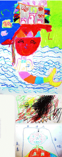 ※處在壓力、危機中的兒童,尚未準備好用言語表逹心靈創痛之前,藉由繪畫反射宣洩出他們的痛苦、恐懼、並讓他們有機會訴說自己的夢想和希望。