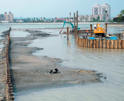 【本報高雄訊】八八水災高屏溪河道淤積嚴重,難以抽水進澄清湖水庫,蓄水銳降到呆水位,有出無進結果,有效水量僅剩四、五十萬公噸,水庫幾近乾涸裸露見底,距正常供水仍短缺廿四萬公噸。大高雄缺水危機未除,水公司積極搶挖高屏溪淤泥,並尋找替代水源。