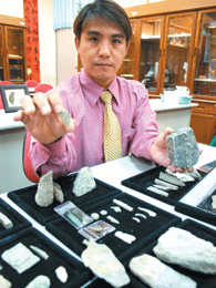 2000年前玉雕 花蓮豐田出土 洪肇君/攝 |2009.08.18 語音朗讀 358觀看次 字級 大 中 小 林盛火在花蓮縣豐田地區撿拾到碾玉痕跡的碎玉,經專家查證後,判定為二千年前的古物。洪肇君攝【本報花蓮訊】花蓮縣民林盛火調查東部地區變質岩時,在花蓮縣壽豐鄉豐田地區發現先民磨琢玉石的遺跡,找到鑽孔過的豐田玉與打琢過的珥玉。這些豐田玉與變質岩,都是人工打磨,推論是利用鑽磨方式,甚至可能利用水力作為動力,輔以竹管研磨。大漢技術學院副教授蔡印來研判,台灣東部玉石加工的歷史最少有二千年。 前一篇文章 今年國慶停辦 明年春假9天 下一篇文章 【地方采風】 熱門新聞 01【詩】草螟公2025.12.1802【閃文集】火星暗斑之謎2025.12.1603與精品品牌撞鞋 印度涼鞋打專利戰2025.12.2104如何優雅不濺水花?2025.12.1605高雄新航線明啟動 佛光山成亮點2025.12.1706寶塔寺 三代同堂搓湯圓、繪燈籠2025.12.1607福建艦航經台海 空拍照首曝光2025.12.1808受星雲大師啟發 旅日名廚獲頒黃綬褒章2025.12.1609資助流浪漢之家 里斯本佛光人跨文化送暖2025.12.1810社論--改變與改變的能力2025.12.16 訂閱電子報 台北市 天氣預報 台灣一週天氣預報 相關報導 北市隨機攻擊案 警:凶嫌籌畫近2年日月潭落羽松 相映成趣富里喵樂園 向貓奴招手北市隨機攻擊 總統令提升反恐警力義大利管樂旗隊 重現中世紀慶典氛圍北車、捷運中山站隨機攻擊 3死6傷