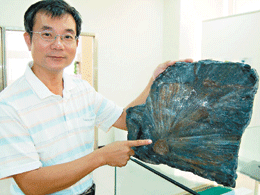 罕見棕櫚化石 大雪山現蹤 張明慧/攝 |2009.08.22 語音朗讀 1251觀看次 字級 大 中 小 教授李慶堯在大雪山林道發現棕櫚科植物化石,約有四千萬年歷史。張明慧攝【本報台中訊】東方技術學院助理教授李慶堯在大雪山林道,發現罕見的棕櫚科植物化石;海岸植物竟在山區出現,研判為造山運動被擠上高山,約四千萬年前形成。台灣石頭學會最近在豐原市藝文館舉辦植物化石特展,李慶堯將採集到的特殊化石提供展覽,最特別的就是他在大雪山林道發現的「似沙巴櫚屬未定名種」棕櫚科植物化石。 前一篇文章 可愛媽祖餅 下一篇文章 教部徵心靈輔導義工 熱門新聞 01【閃文集】火星暗斑之謎2025.12.1602【詩】草螟公2025.12.1803包錦蓉:我可以逆風高飛2025.12.1304佛光穿透鐵窗 佛光山監獄佈教 70 年2025.12.1305【為人父母】 允許如其所是2025.12.1506遠離初老&改善骨鬆的解方2025.12.1307【詩】 航夢2025.12.1508東方微笑跨越千年 麥積山石窟現佛館2025.12.1509寶塔寺 三代同堂搓湯圓、繪燈籠2025.12.1610人間佛教在菲律賓2025.12.14 訂閱電子報 台北市 天氣預報 台灣一週天氣預報 相關報導 粉紅泡泡 寓教於景哈瑪星鐵道園區 添重量級成員客運車站 變親子園區第8屆公視董監事 公布候選名單火流星乍現太平山清晨結霜 雪白美景配日出