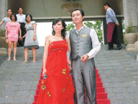 【本報台南訊】在台南縣柳營鄉江南度假村餐飲部服務的二十三歲陳韻如,向交往七年的三十三歲男友顏志達要求婚禮時能否穿上「蝴蝶禮服」,顏志達詢問許多五星級飯店都表示辦不到,江南度假村應允試試,結果成功達成這項愛的任務。