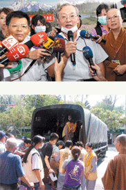另有近三十名六龜鄉寶來村民,昨天搭乘軍用卡車前往六龜天臺山暫時居住。「因為家就在不遠的地方,搬到天臺山,只要路修好,馬上可以返家。」鄉民期待的心情,透過言語表露無遺,雖然捨不得離開相處半個月的佛光山、佛光人,但想到可以早一點回到家園,仍然強打起精神。