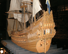 瓦薩船建於一六二五年,是瑞典國王古斯塔夫二世下令建造。它是一艘戰艦,為了向普魯士國王示威而造。這艘雕飾最為華麗、最威風凜凜的木造戰艦,造價在當時可說是世界之最,此船歷時三年建造成功,於一六二八年八月十日舉行隆重的下水首航儀式。