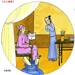 當時約十六、七歲的詩人白居易,第一次來到京城長安。有一天,他帶著作品拜見著作郎顧況。雖然,白居易沒沒無聞;然而,顧況還是接見了白居易。 (洪義男/繪)
