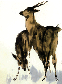 這情景源自外婆講的故事,名喚《鹿回頭》。故事有個完美的結局:被追趕的小鹿倏然回頭,剎那間,渾身殺氣的獵人心頭一顫,滿月弓弦略有鬆弛。就在他遲疑的瞬間,小鹿已化作一個美麗女子,深情款款向他走來。後來,獵人與鹿女結為恩愛夫妻,定居於山野,像所有的王子與公主一樣,過著幸福的日子。