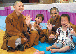 有法師的陪伴,小朋友在福慧家園笑開懷。圖/人間社提供