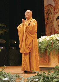 還記得一九八六年七月,在高雄普賢寺皈依師父上人的情景,那一刻!香讚梵音飄揚,大眾虔誠誦念,祈請佛菩薩降臨殿堂,而出現於眾人之前的,是一位身相莊嚴,表情慈悲柔和,卻有說不出親切感的平易近人的長者,初見師父的那一刻,我萌生莫名的感動,心像似遊子回家般歡喜安然,剎時點燃如佛經所云「得度生死」的希望!我當時內心的震動,至今不能忘懷。