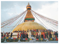 圖說:尼泊爾最大的佛塔包塔那,建於公元一世紀,而在十一世紀重建。但一九五九年,西藏人在這附近建立流亡避難所以後,從此也成了加德滿都的藏傳佛教中心。人間社記者沈天玄攝