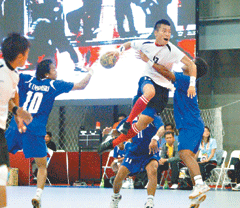 上半場中華劉孟昌率射門拿下兩分,接著隊長林宗志、林昭穎接連發動強烈快攻得分。防守方面,中華手球固若金湯,中場以十九比六領先。