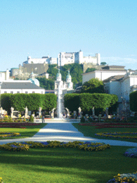 下午六點多,我們再次出門,首先在米拉貝爾宮下車。一走進米拉貝爾宮,我們意外的發現:郝恩薩爾斯堡要塞高高的在山頂,而大教堂的兩個尖頂塔就聳立在山腳下,看起來頗為壯觀。