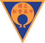 正三角形,強調教育內容:倫理、民主、科學不可偏廢。也期勉學子三達德「智、仁、勇」要兼修。端正的楷書校名,期勉新中人,文質彬彬、頂天立地,吉祥紅色,象徵校運昌隆。