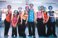 【本報民雄訊】穿上肚兜,戴上臉譜面具,嘉義縣民雄鄉福樂村家政舞蹈班的九名年輕媽媽,在舞蹈老師劉素援指導下,結合電音與八家將,自編創意舞蹈,,表演邀約不斷。